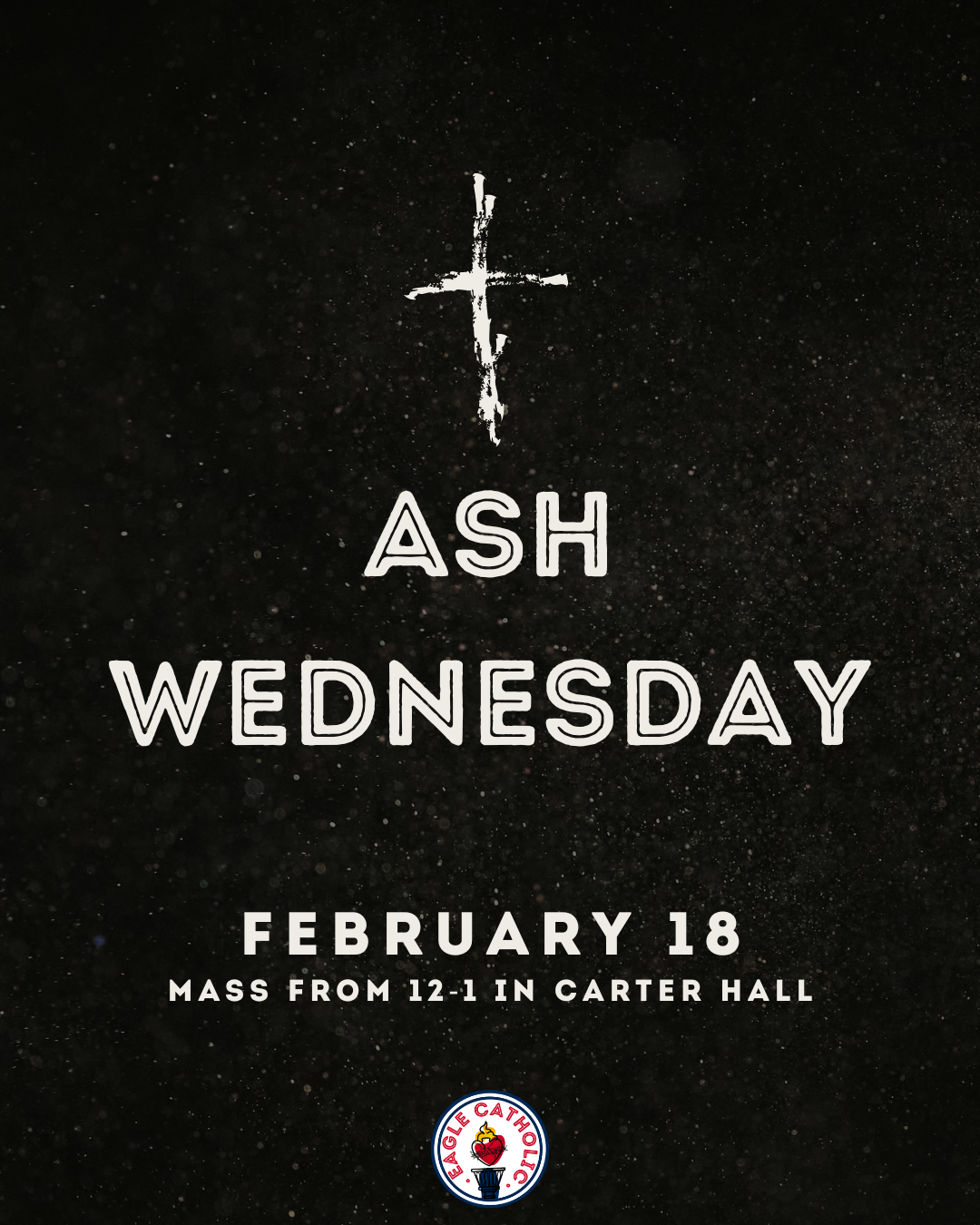 Ash Wednesday is coming up! There will be Mass on campus on February 18th. Mass will be from 12-1 pm in Carter Hall.