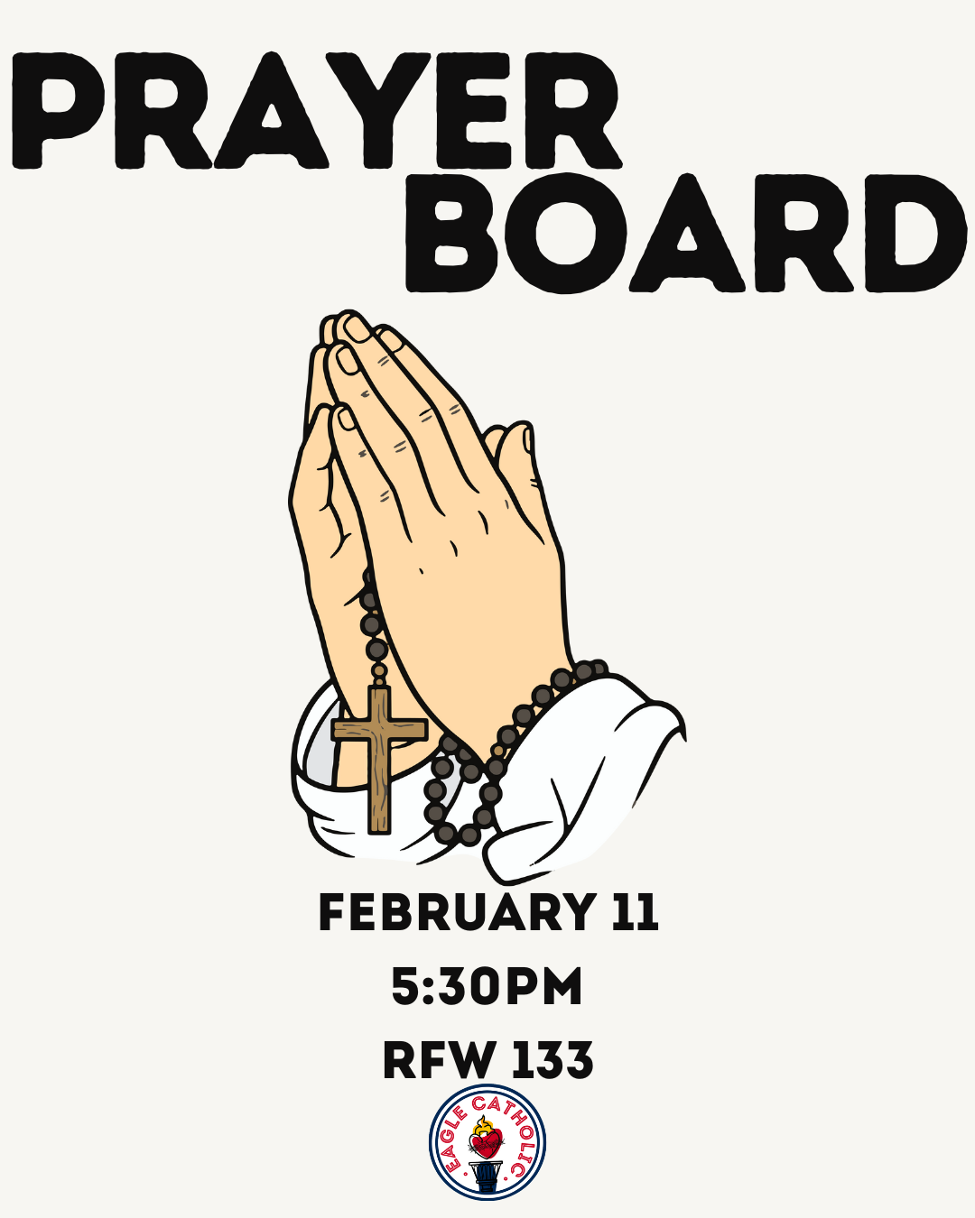 Next Wednesday the event will be making prayer boards. You can make a board for your room that can remind you of the things you can pray for or some of your favorite prayers.