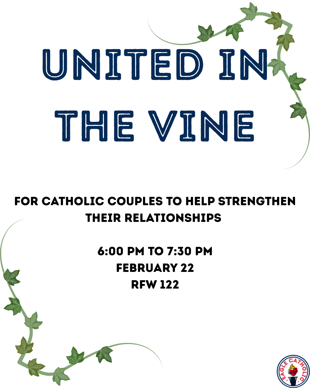 Join us on the last Sunday of the month for a talk about the importance of marriage in a Catholic relationship. It is open to all Eagle Catholic students. You do NOT need to be dating someone to attend.