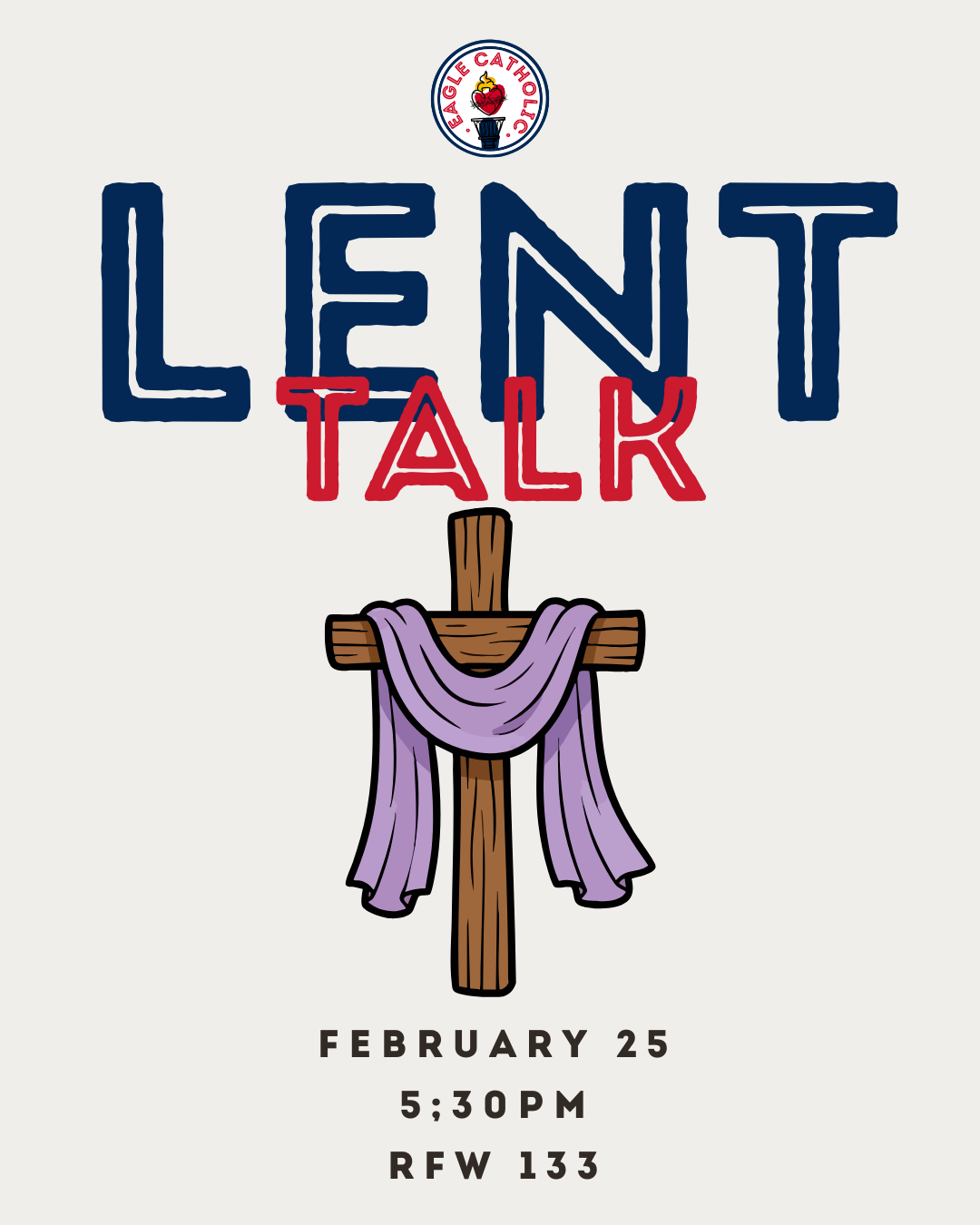 At the end of the month on Wednesday, the 25th we will be having a Lent talk. Come join us for more information about Lent. Details coming soon!