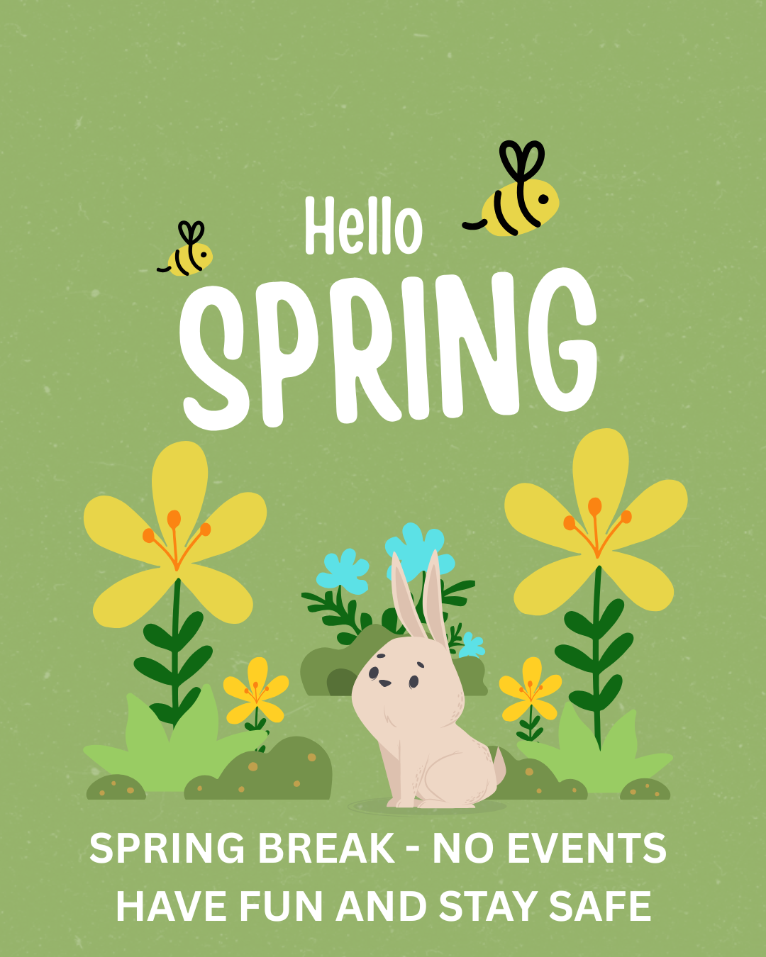 Next week is Spring Break. Have fun and be safe during the break!!