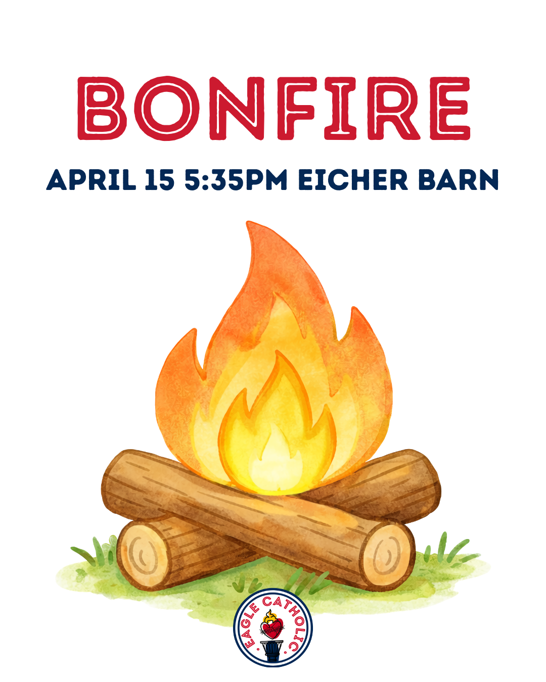 Next week we will be having a bonfire at Eicher Barn which is just past the baseball field. Please bring a friend to come hang out, tell stories, and possibly make s'mores. There will be Mass and Adoration before the bonfire in RFW 133.
